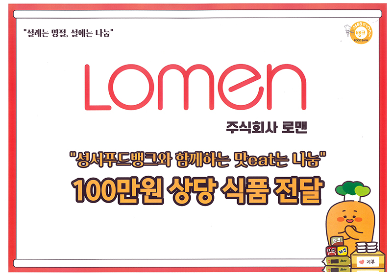 [문화뉴스 박선혜 기자] 대구 달서구 성서종합사회복지관이 지난 6일 설 명절을 맞아 (주)로맨으로부터 후원물품 60종(100만 원 상당)을 전달받았다고 밝혔다.